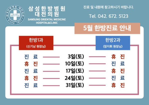 2025년 5월 진료 안내 및 공휴일 진료 안내